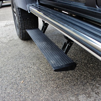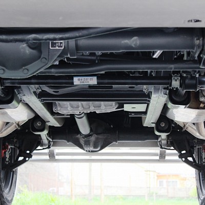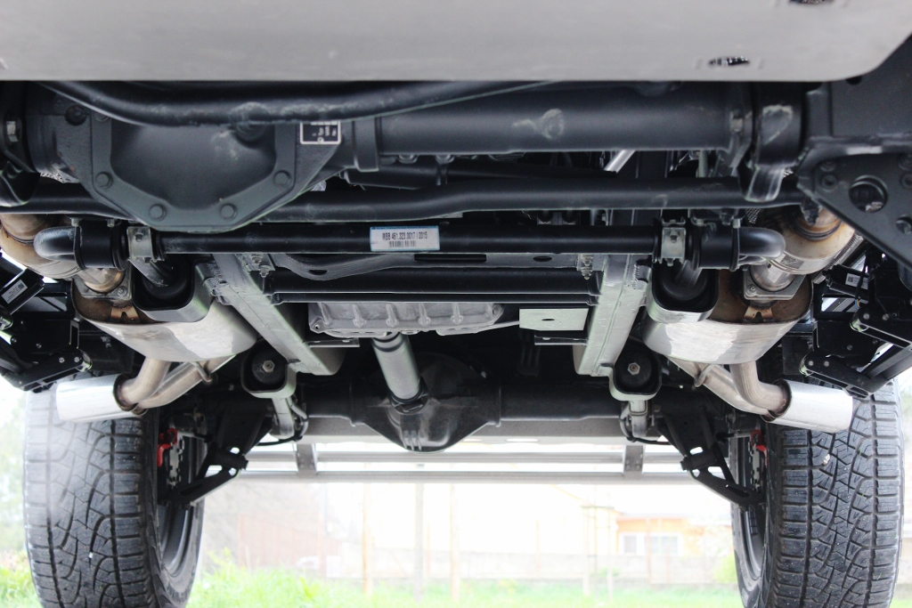 Ale to neznamená, že v teréne zaostáva. Práve naopak. K základu patria portálové nápravy. Hnacie osi kolies sú teda uchytené nad osou kolesa a hnací moment sa prenáša koncovým prevodom. Obrovské 22-palcové disky sú obuté špeciálnymi pneumatikami s profilom 325/55, svetlá výška tohto „autíčka“ je neuveriteľných 45 centimetrov a nájazdové uhly 52, respektíve 54 stupňov. Tie sú, mimochodom, aj výsledkom vyvedenia výfukov pred zadnými kolesami, takže v teréne je malá pravdepodobnosť ich zachytenia. Priam neuveriteľná je schopnosť a najmä hĺbka brodenia, ktorá je čosi vyše metra, čo je až dvojnásobok oproti ostatným SUV. V teréne pomáhajú tri uzávierky diferenciálov, redukčný prevod, dvojdielny antikorový kryt podvozku a extrémne pevné zavesenie.