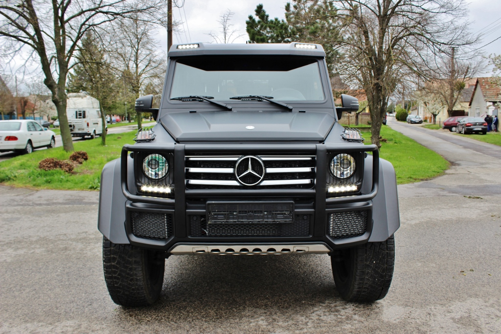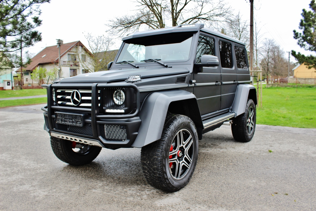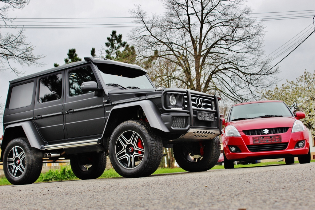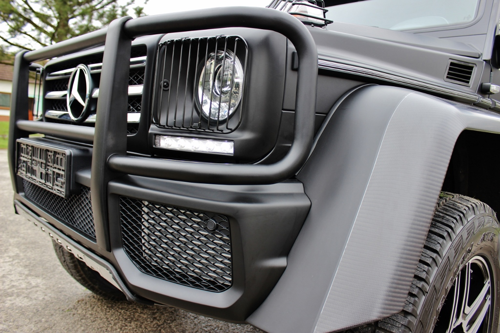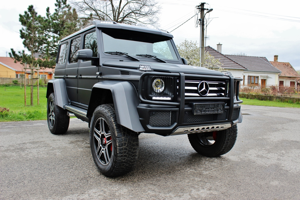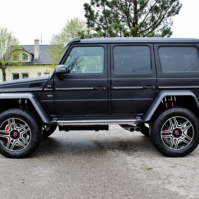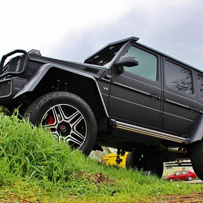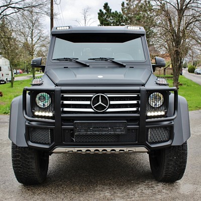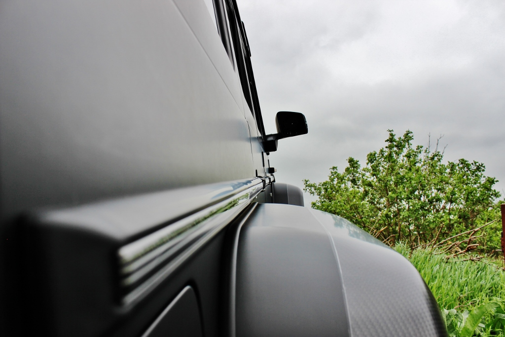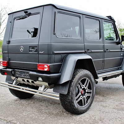 A teraz náš tím na čele so skvelým profíkom Peťom Bártom, opäť oblepoval do čiernej matnej fólie, jeho nástupcu, pomenovaného originálne, Mercedes G 4x4 na druhú. Nami testovaný štvorliter s dvoma turbami a ôsmimi valcami nás uchvátil od samotného začiatku. Už výkon 310 kw (420koní) a zrýchlenie z nula na stovku za 5,9 sekundy napovedá, že nepôjde len o mašinu do terénu.