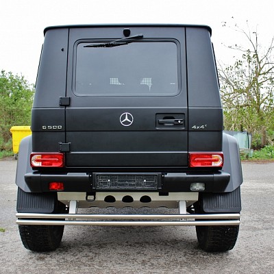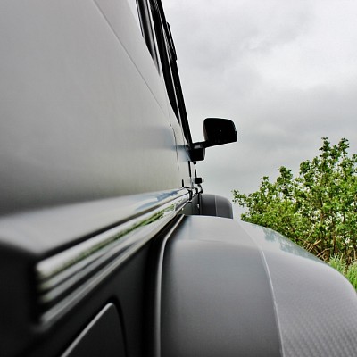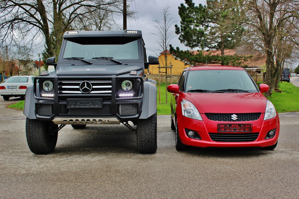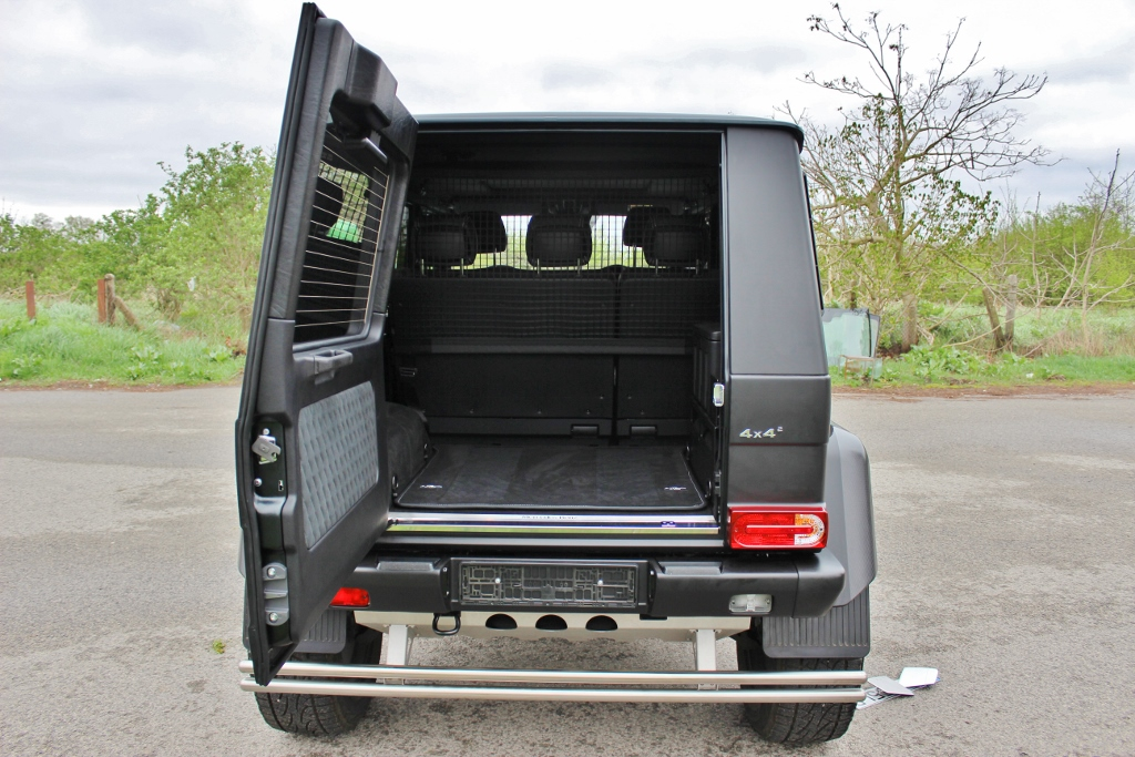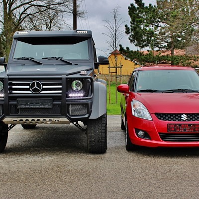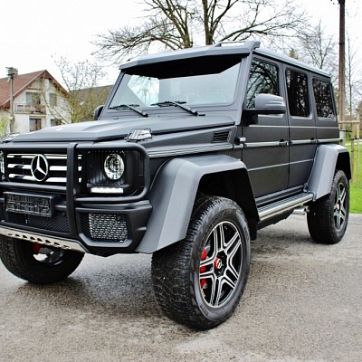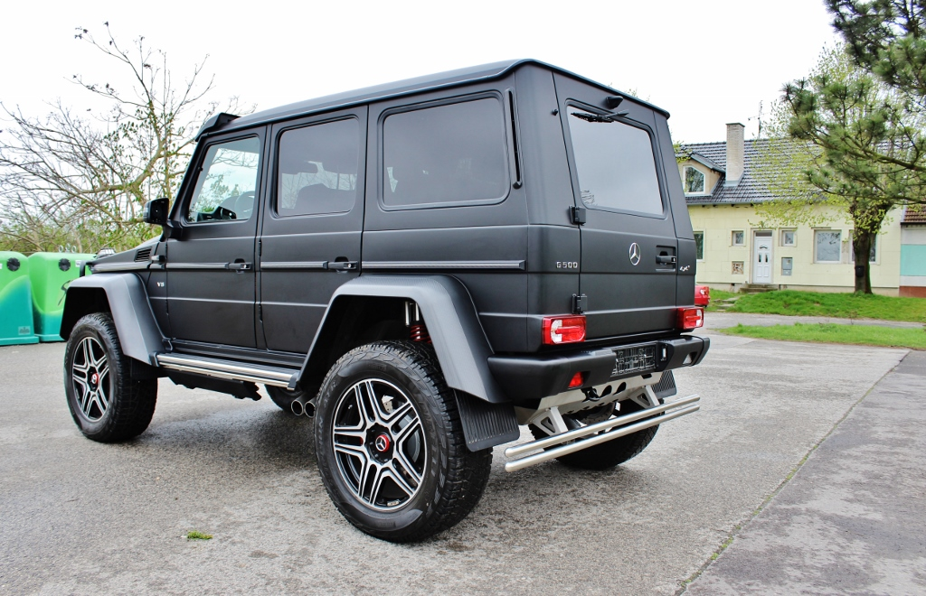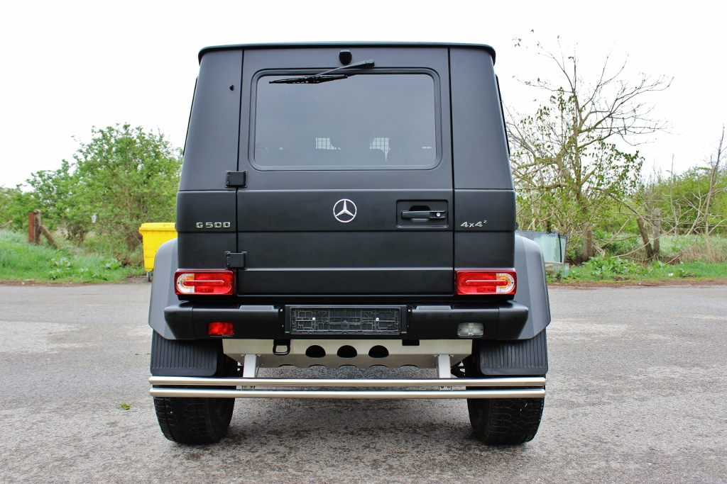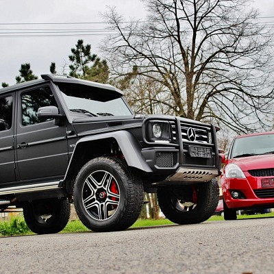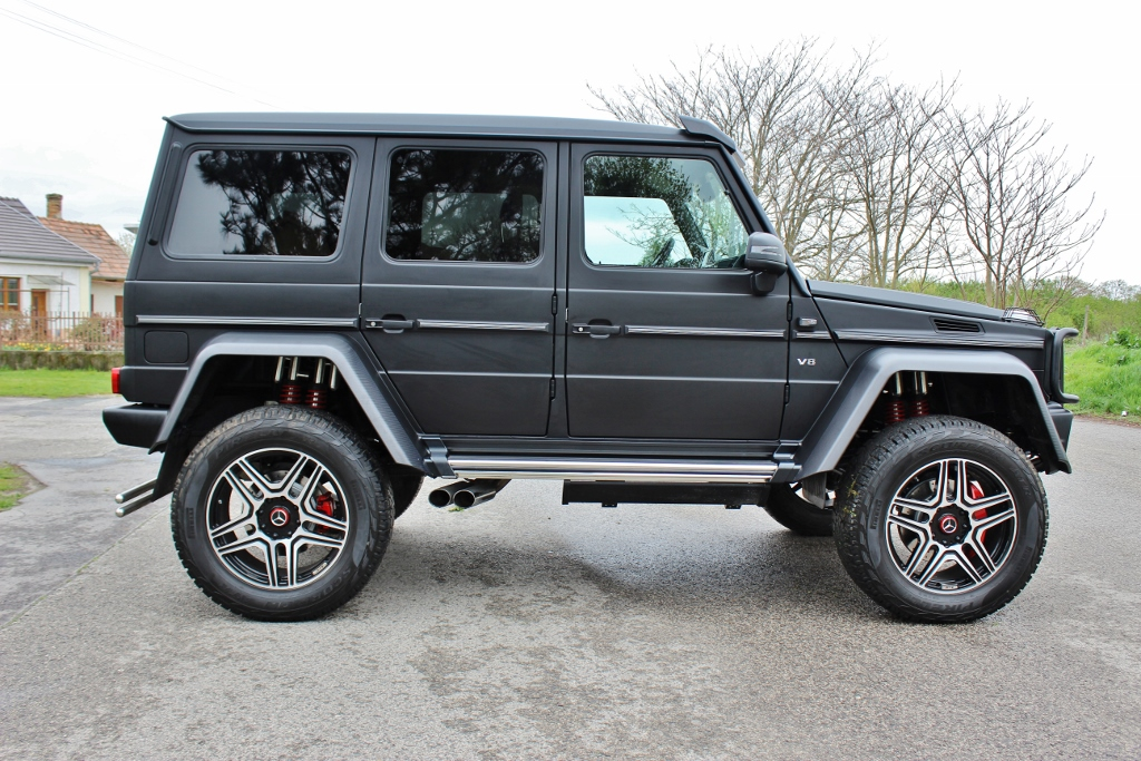 A teraz náš tím na čele so skvelým profíkom Peťom Bártom, opäť oblepoval do čiernej matnej fólie, jeho nástupcu, pomenovaného originálne, Mercedes G 4x4 na druhú. Nami testovaný štvorliter s dvoma turbami a ôsmimi valcami nás uchvátil od samotného začiatku. Už výkon 310 kw (420koní) a zrýchlenie z nula na stovku za 5,9 sekundy napovedá, že nepôjde len o mašinu do terénu.